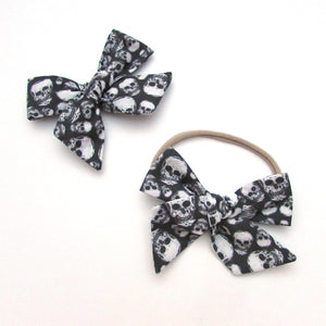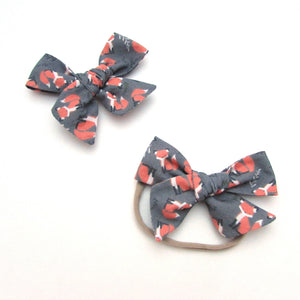 Please choose from nude nylon headband or an alligator clip. Bows on alligator clips will not come glued to the clip. This is to allow you to switch sides depending on how your love wears their hair by sliding the clip out from the back of the knot and placing it on the side of your choice.