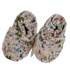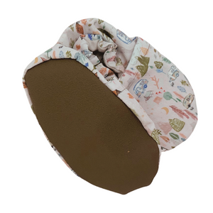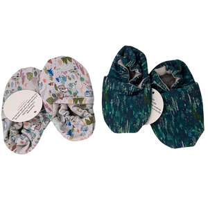 Perfect baby and toddler shoes for your little one on the go. The unique grippy soles provide the traction and stability your little one needs as they learn to walk with confidence. Shoes are lined with cotton flannel, perfect for wear with or without socks. Gentle ankle elastic will keep shoes on the most active kickers and crawlers. Handmade in Pennsylvania and North Carolina.