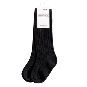 Black Cable Knit Knee High Socks for babies, toddlers, and children!