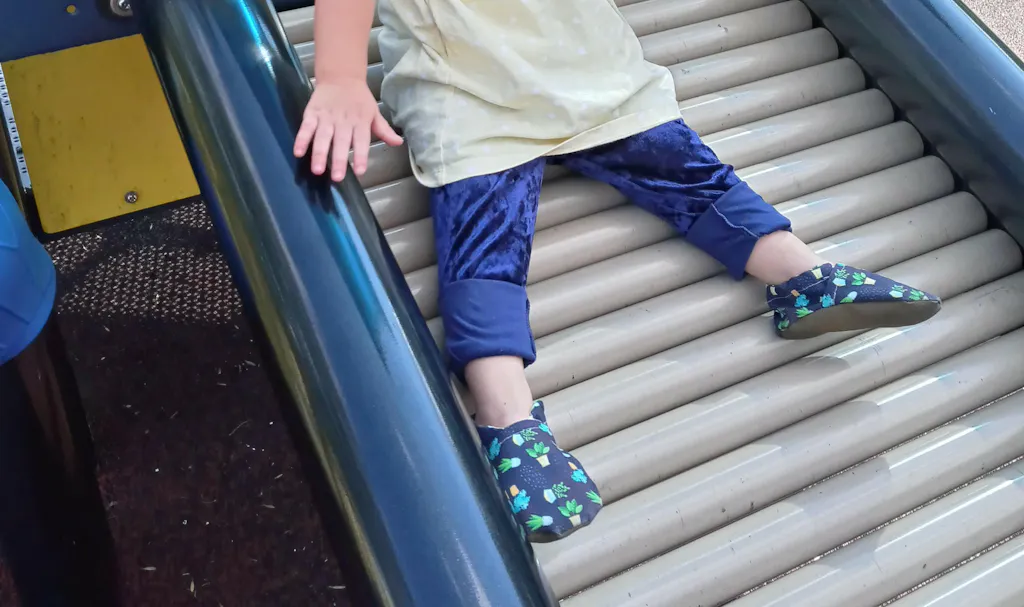 As with all Cabooties, our grab bag shoes have elastic around the ankle which makes them easy to put on but difficult for babies to kick off. The soft flannel lining makes them super comfortable for little feet, and flexible rubber soles allow tiny toes to flex and grip the ground.