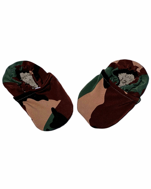These Camo shoes are a must-have for little explorers! As with all Cabooties, snug elastic runs around the ankles to ensure these shoes will never fall off, and a flexible rubber sole allows tiny toes to wiggle and grip the ground. These shoes also benefit from the use of swim fabric which makes them a perfect choice for the pool, beach, or even splashing in puddles. They are also machine washable - care instructions are printed on the tag.