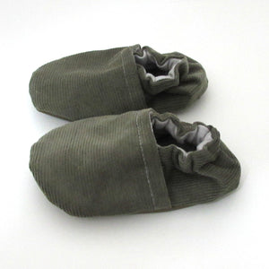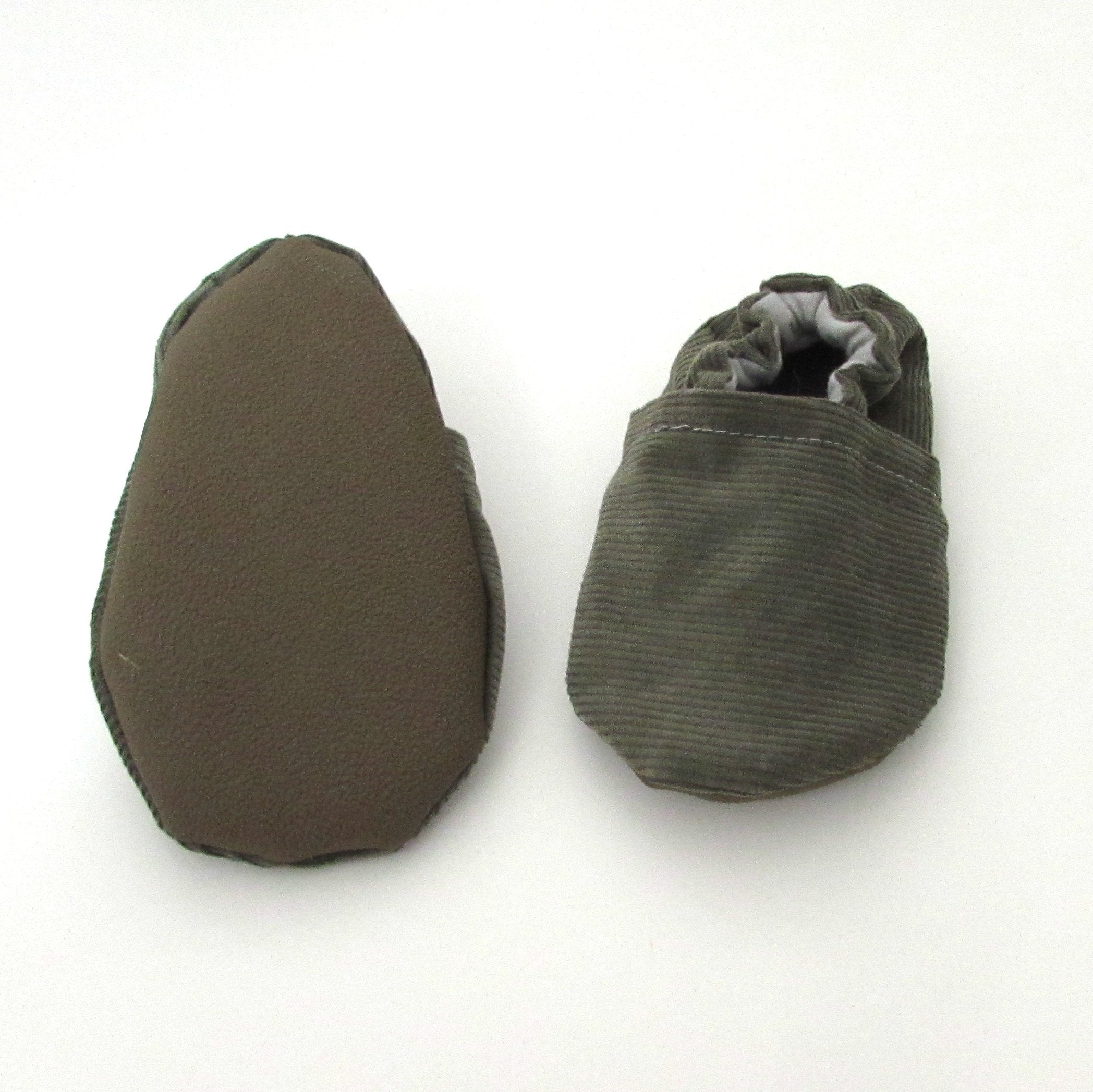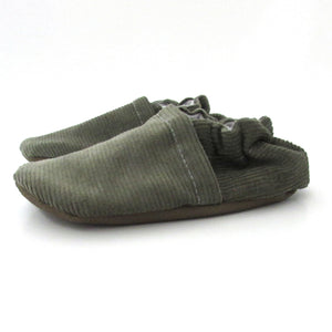 Perfect first walker shoes for your little one on the go. The unique grippy soles provide the traction and stability your little one needs as they learn to walk with confidence. Shoes are lined with cotton flannel, perfect for wear with or without socks. Gentle ankle elastic will keep shoes on the most active kickers and crawlers. Handmade in the USA.