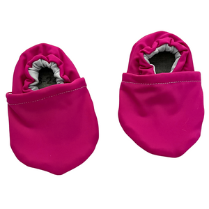 These go-with-everything shoes are a must-have for summer! As with all Cabooties, snug elastic runs around the ankles to ensure these shoes will never fall off, and a flexible rubber sole allows tiny toes to wiggle and grip the ground. These shoes also benefit from the use of swim fabric which makes them a perfect choice for the pool, beach, or even splashing in puddles. They are also machine washable - care instructions are printed on the tag.